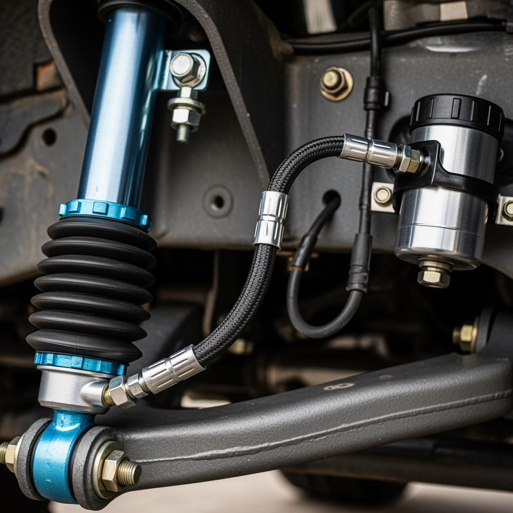 Plan the installation to preserve safety systems and avoid NVH issues. Support the vehicle securely, follow OEM torque specs, and replace hardware where required. Pre-set adjusters to the supplier’s recommended baseline and confirm spring preload before tightening bushing fasteners at ride height to prevent binding. After installation, check brake hose and ABS wire clearances through full droop and compression, especially when reservoirs and hoses are added.
