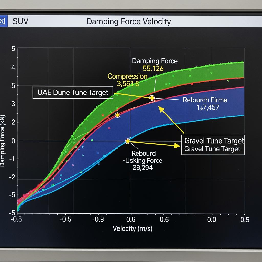 The UAE’s mix of soft dunes, fast gravel, heat, and occasional rocky wadis demands shocks that resist fade, control rebound over whoops, and carry weight without bottoming. Material choice (e.g., high-grade alloy bodies), fluid stability, and seal integrity (e.g., heat-resistant elastomers) matter as much as valving.