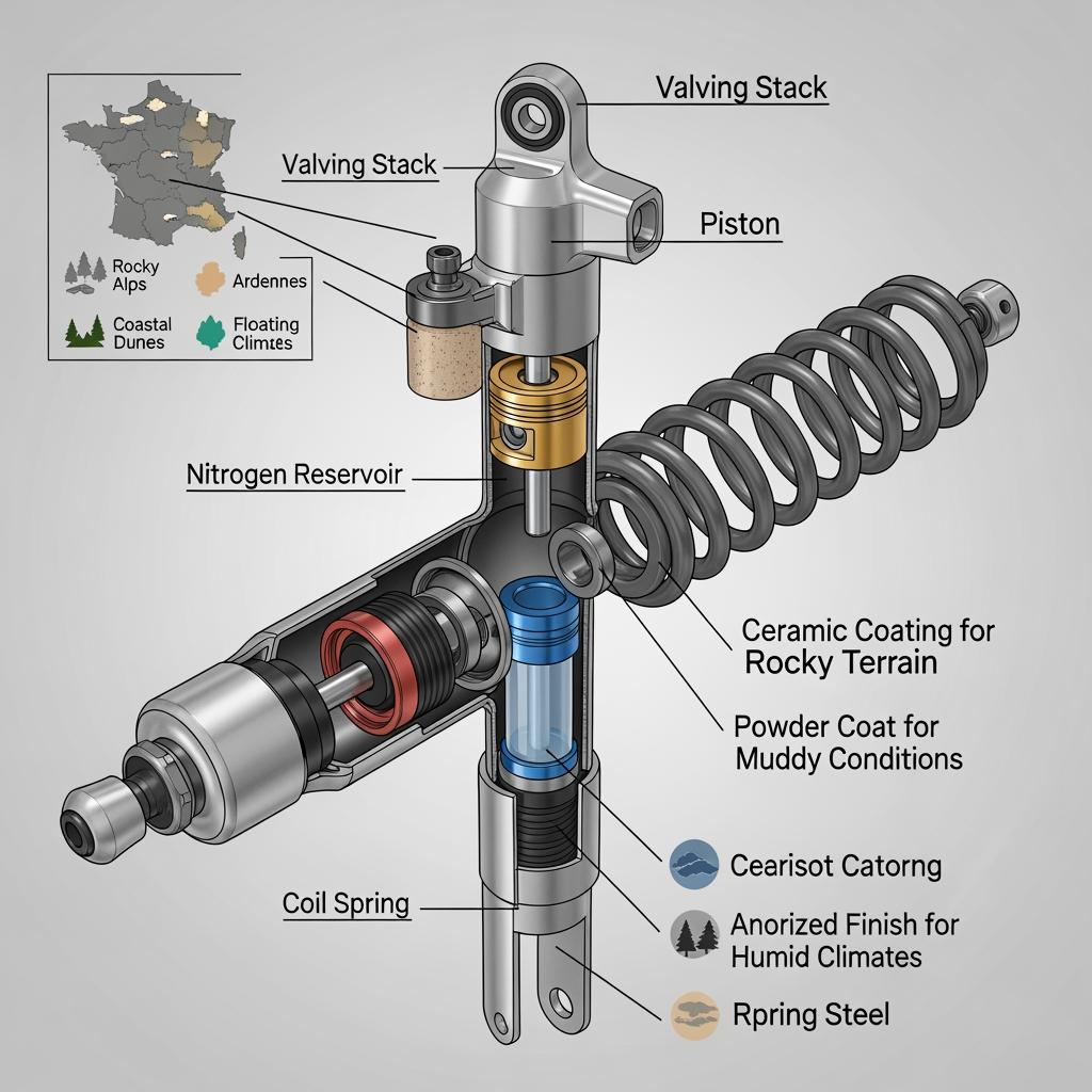 This framework keeps the ride natural on French B-roads and D-roads while protecting components on climbs and ruts. Start with “spring to payload,” then “valve to speed and surface,” and finally pick hardware that survives salt air, mud, and alpine temperature swings.