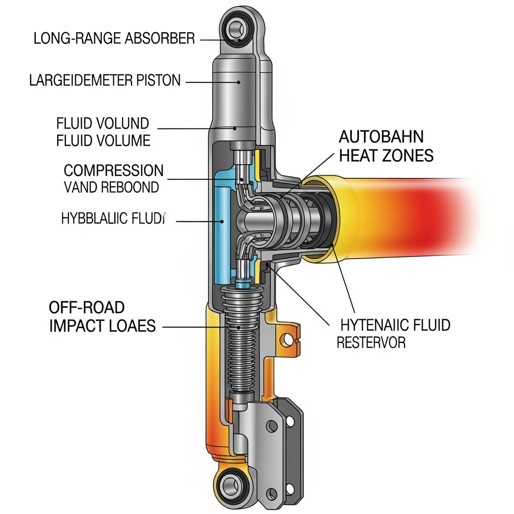 - Target a larger piston and oil volume with multi-stage valving to delay fade on long Autobahn runs and sustained Alpine descents.