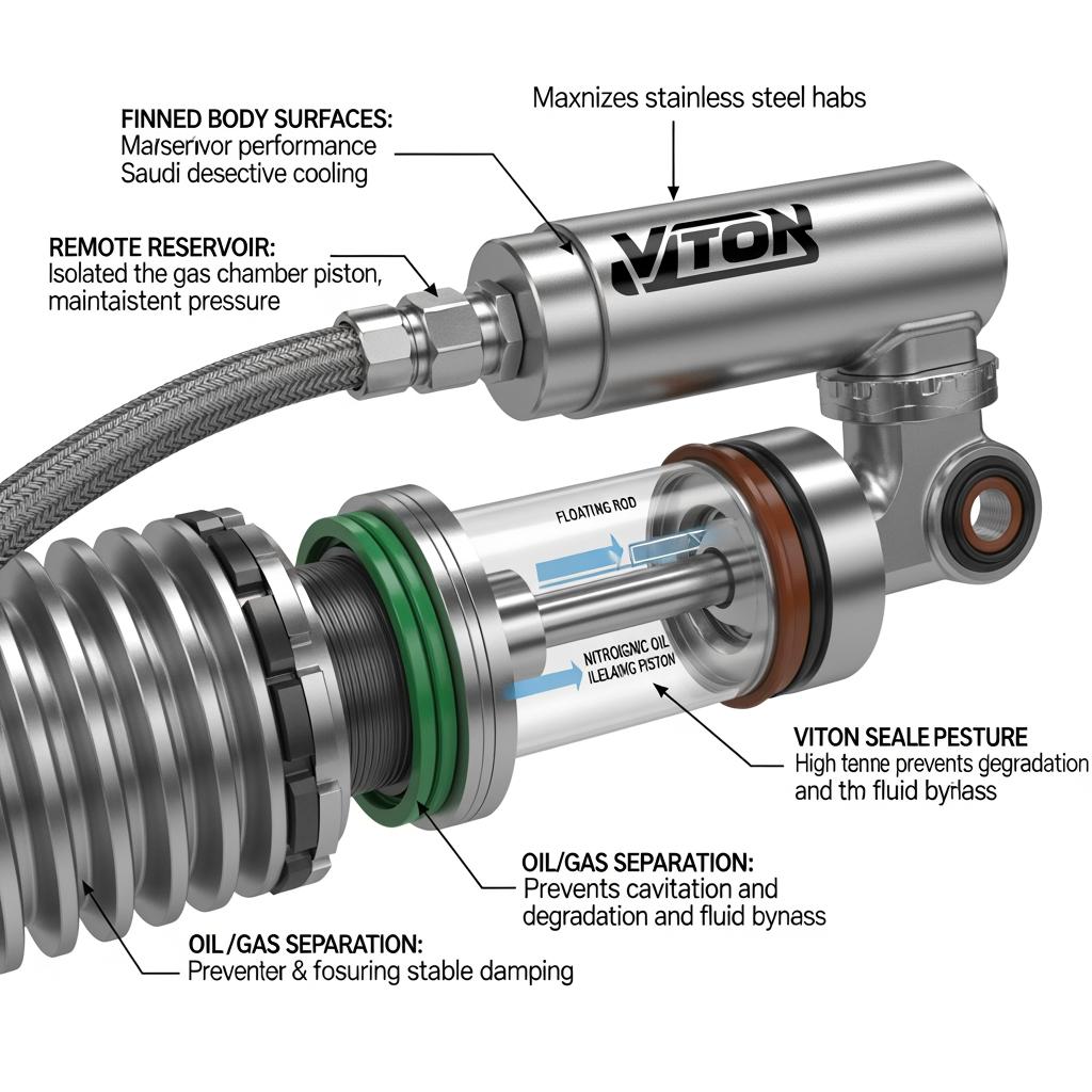 Diamètre du piston46–60 mmLarger piston = better heat shedding and controlHeavier armored or overland builds trend to 50–60 mm