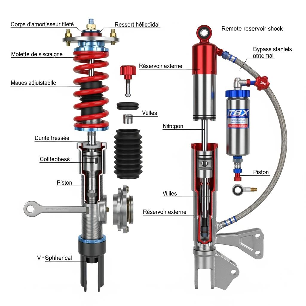 | Montagne/Overland | Amortisseurs réservoir distant, coils réglables, butées | Résistance échauffement, adaptation terrain | Haut | Moyen à long | Meilleur pour flottes alpines ; prévoyez essais descentes longues. |
