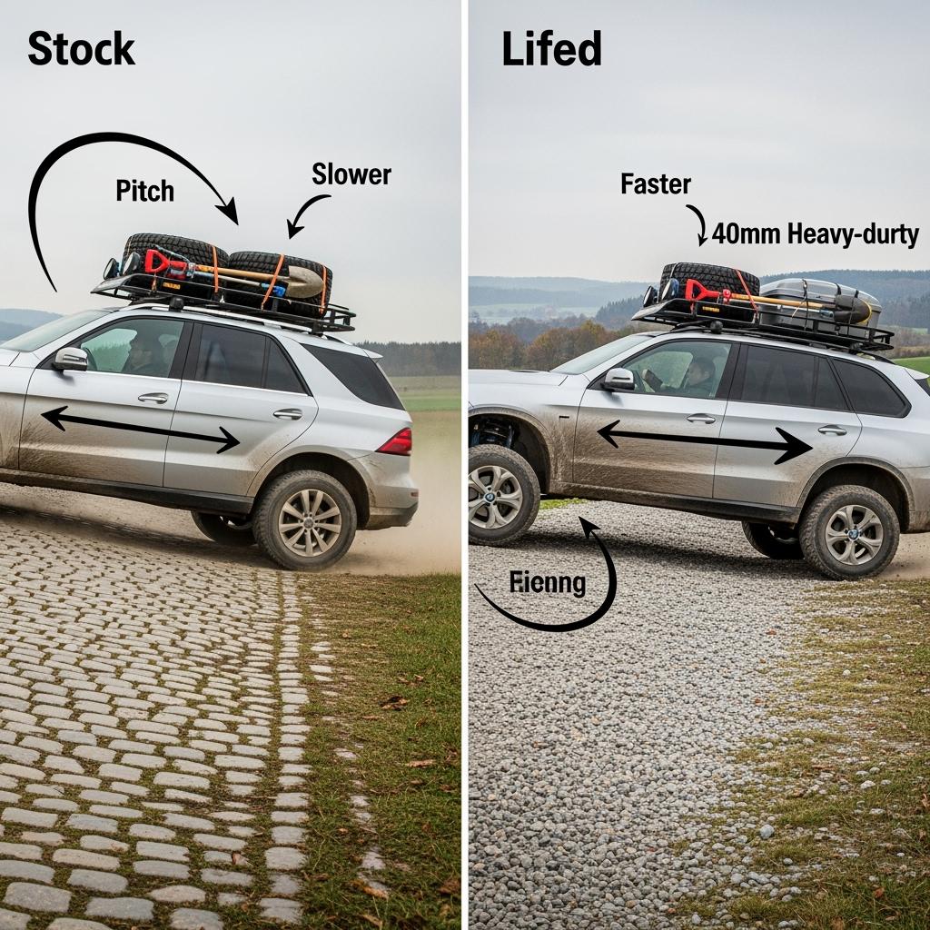 Commencez par cartographier vos routes les plus lourdes et fréquentes ainsi que la charge utile maximale attendue. Choisissez ensuite taux de ressort, hauteur de caisse et amortissement pour contrôler les mouvements de caisse sans pénaliser occupants ou cargaison. En Allemagne, de nombreuses flottes visent +30–50 mm de hauteur de caisse, ce qui préserve les angles de cardans, la longueur des durites de frein et le réglage des phares dans des limites gérables, tout en créant de l'espace pour pneus tout-terrain et protections sous-châssis.