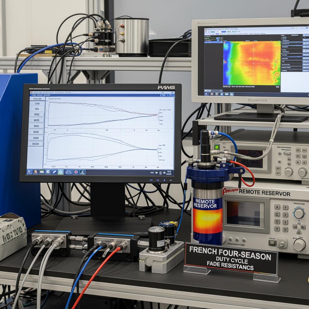 Performance testing splits into lab and field. In the lab, a shock dyno measures force-velocity curves and temperature response, confirming that the valving delivers the intended damping at different piston speeds. Salt-fog and dust ingress testing are relevant for coastal departments and agricultural users, while bushing and seal materials should be validated for freezing mornings followed by warm afternoons—common in French shoulder seasons.