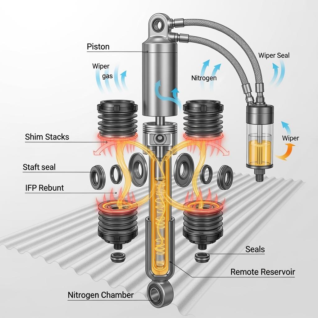 ツインチューブ、モノチューブ、リモートリザーバー、内部バイパスアーキテクチャの選択はペイロード変動、地形厳しさ、メンテナンス哲学次第です。