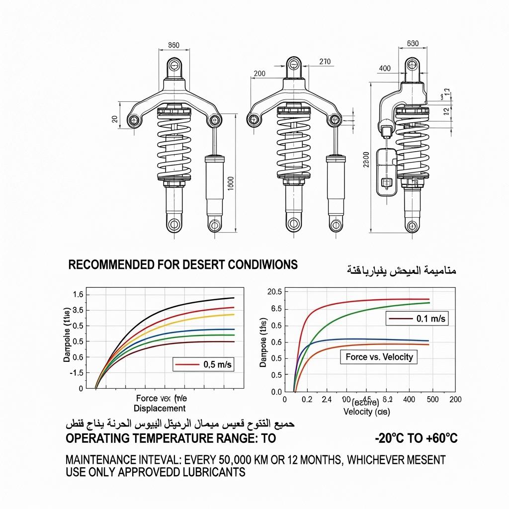 熱劣化に耐え、重SUVをコルゲーションや砂丘で制御し、砂埃に耐久するもの。具体的には耐高温油、十分な油量(リザーバー経由)、堅牢シール、現地KSA条件下で検証されたチューニングです。