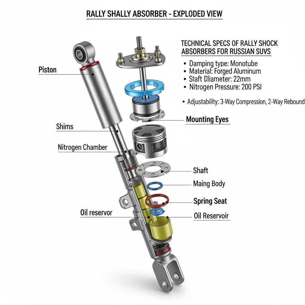If your SUV competes or works in Russia’s mixed terrain and sub-zero winters, the Technical Specs of Rally Shock Absorbers for Russian SUVs must balance fitment accuracy, tuned damping, robust sealing, and regulatory compliance. Below is a pragmatic guide that takes you from certification and selection to climate-proof performance and supplier compliance, with a brand comparison and a real-world upgrade story. If you already know your axle loads and mounting formats, share them now—stroke, eye/eye or pin/eye, desired damping curve—and we’ll propose a setup. To move fast, contact our engineering team for a tailored spec and quote.