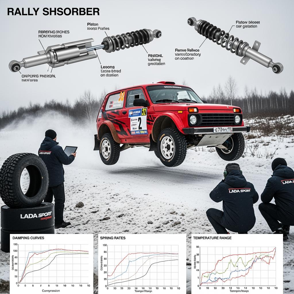 A private Russian rally team running a mid-size SUV struggled with mid-stage fade and harshness on frozen ruts. Baseline shocks were twin-tubes without reservoirs, using a mid-viscosity oil that thickened at cold start and thinned as they heated, causing inconsistent grip.