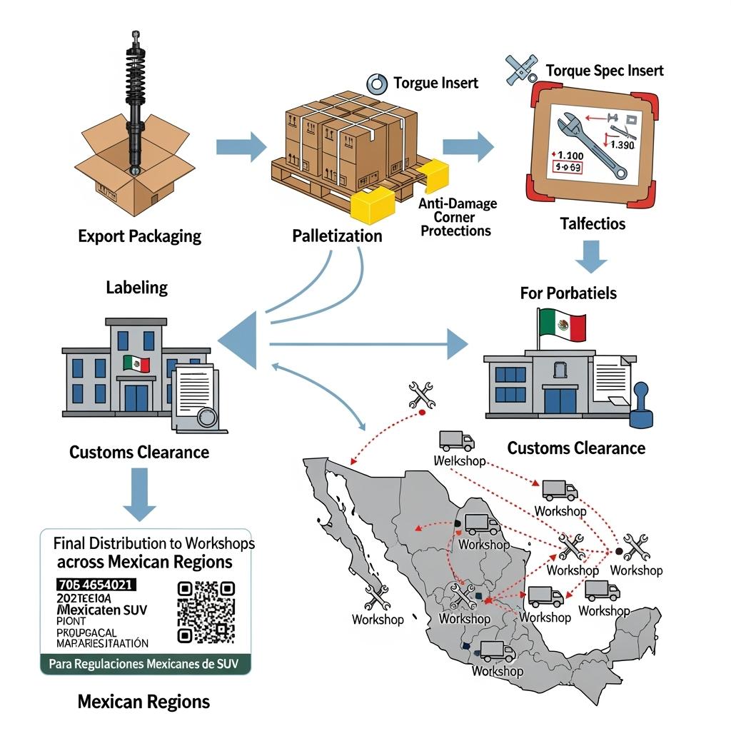 Arazi SUV görev döngülerini ve yerli ithalat gereksinimlerini karşılayan net süspansiyon malzeme listesiyle başlayın. Malzeme izlenebilirliği olan amortisör montajları, salıncak kartuşları, burçlar, montajlar ve ilgili donanımlara odaklanın. Meksika için parçalar gerektiğinde İspanyolca etiketleme, N·m cinsinden tork spesifikasyonları ve uyum veya gümrük müşavirinize teslim edilebilecek test özetleriyle gelsin. Doğrulama, tezgah dinamometre eğrilerini hız tümsekleri (topes), oluklu yol, çukurlar ve yüklü frenleme上的 araç testleriyle birleştirmelidir.